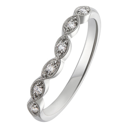 The Edwardian period used diamonds in profusion together with the hard metal platinum. Ring designs for women were graceful, delicate and combined flowing lines to create intricate flowers, bows and detailed motifs.