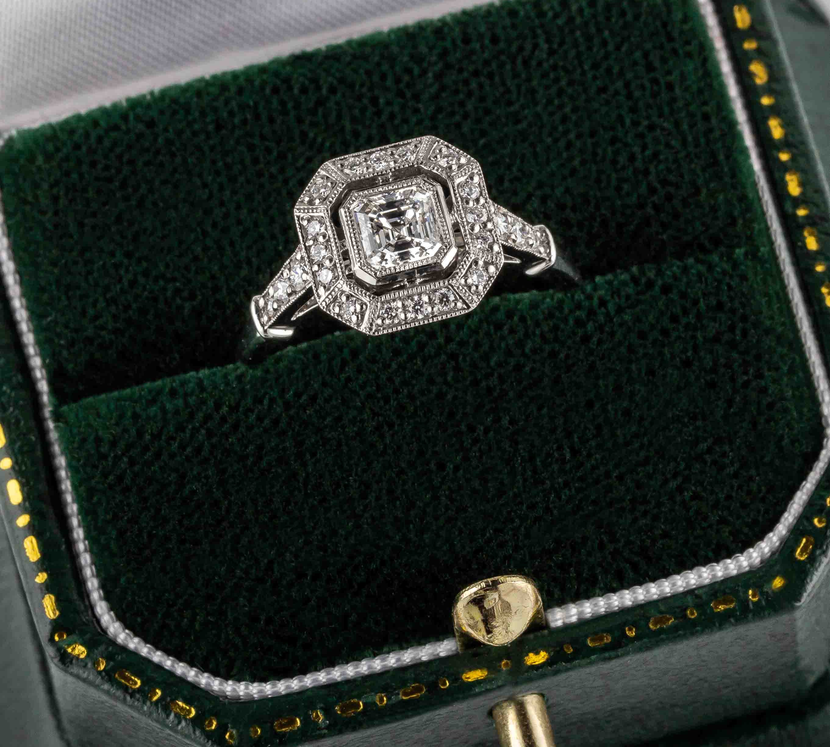 Vintage style engagement rings, Made in UK in Hatton Garden