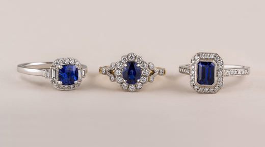 Sapphires look wonderful in a variety of settings and engagement ring styles, including Art Deco-style engagement rings with baguette diamonds, Edwardian-style sapphire cluster rings, and Victorian-style carved half-hoop rings.