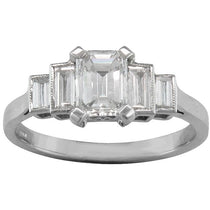 Our Art Deco emerald cut diamond ring makes a classic statement on location at Caswell House in Oxfordshire. The rectangular shaped diamond known as the 'emerald cut' became fashionable in the Art Deco era. Have you ever wanted to look inside a gemstone? Perhaps you have wondered what a diamond really looks like not only on the surface but also deep inside the stone. Emerald cut engagement rings, with the gemstones featuring large facets on the top and sides of the stone, appear to give the viewer this opportunity. Find out more about the emerald cut shaped diamonds on this All about diamonds post. The shoot was featured in the Want that Wedding blog.