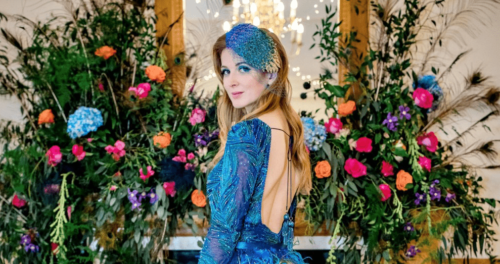 This lavish wedding shoot features bright jewel colours inspired by peacock feathers, and our beautiful Asscher-cut emerald ring.