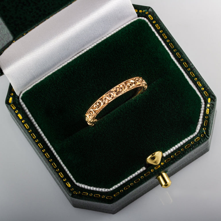 Vintage Hand Engraved Wedding Ring in 18ct Rose Gold