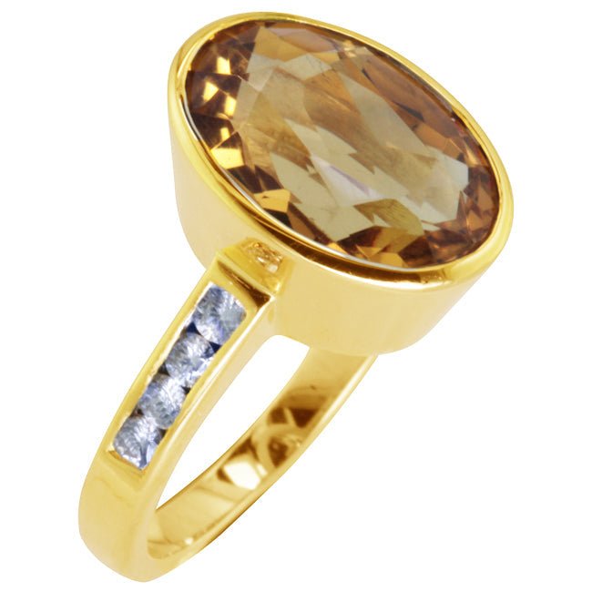 The citrine weighed over seven carats and was set in yellow gold with five channel set diamonds on each shoulder.