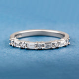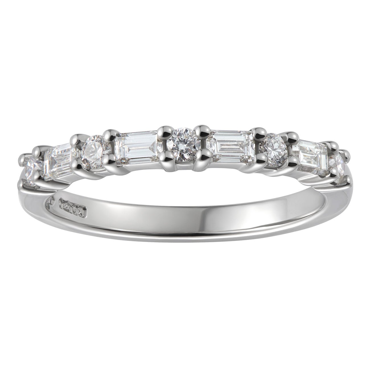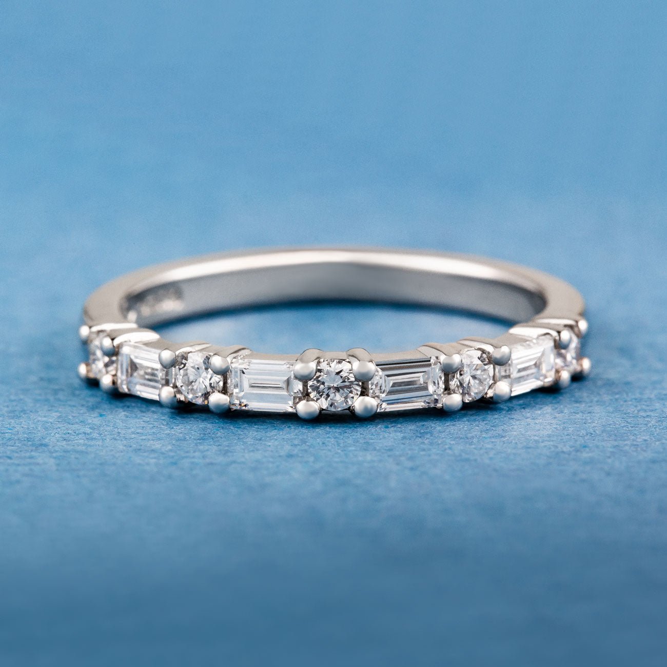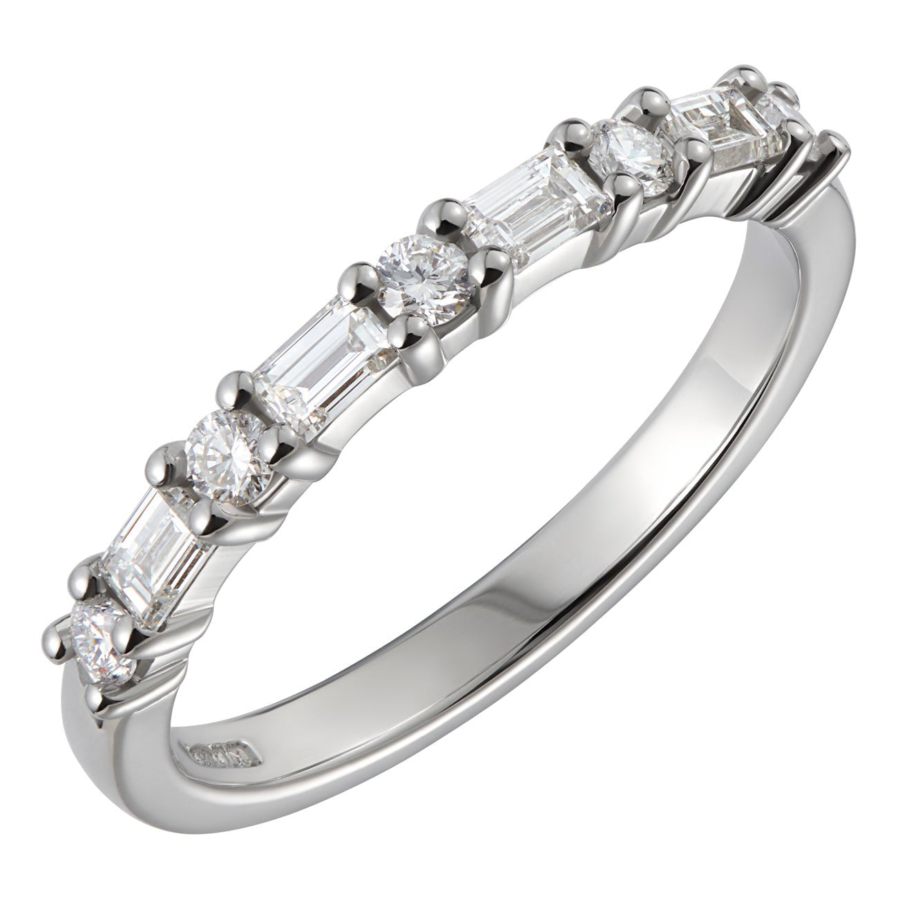 Baguette and Round Diamond Half Eternity Wedding Ring in Platinum