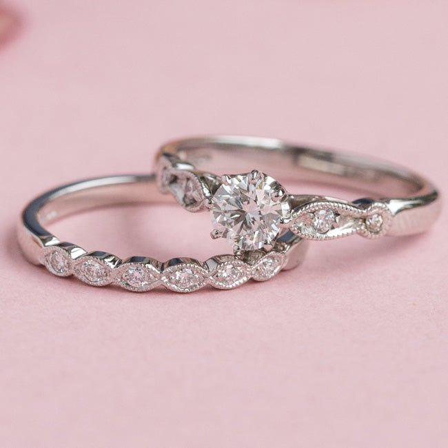 Edwardian round cut diamond engagement ring with scalloped-set diamonds