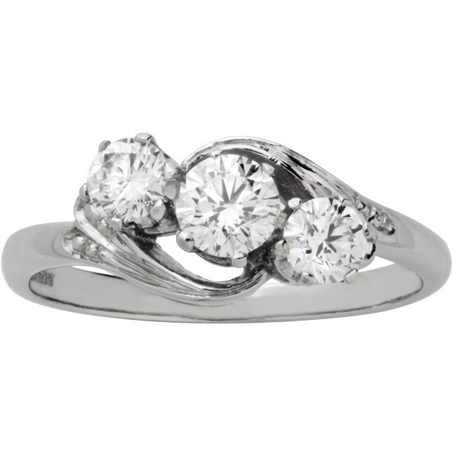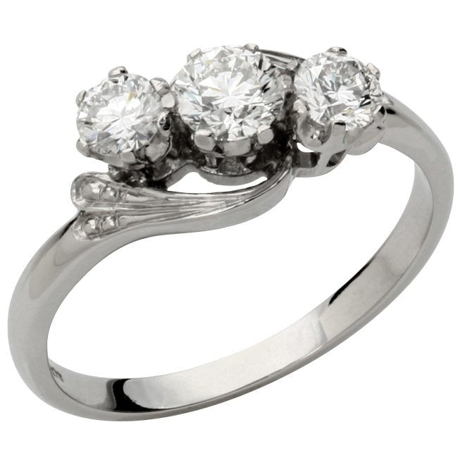 This platinum three stone ring is set with three round brilliant cut diamonds weighing 0.55 carat in total.