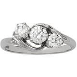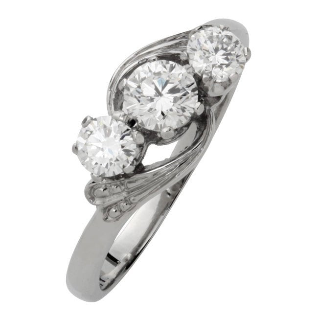 This unusual trilogy engagement ring has all the style and grace of the early 20th century. The sensuous curved pattern is based on an original Art Nouveau style ring from the late Victorian to early Edwardian era. The floral shoulders show the exuberance of nature and new beginnings.