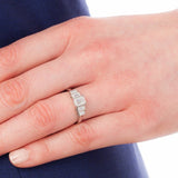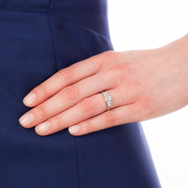 This platinum and diamond ring is modelled from an original late 1920s design.