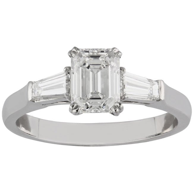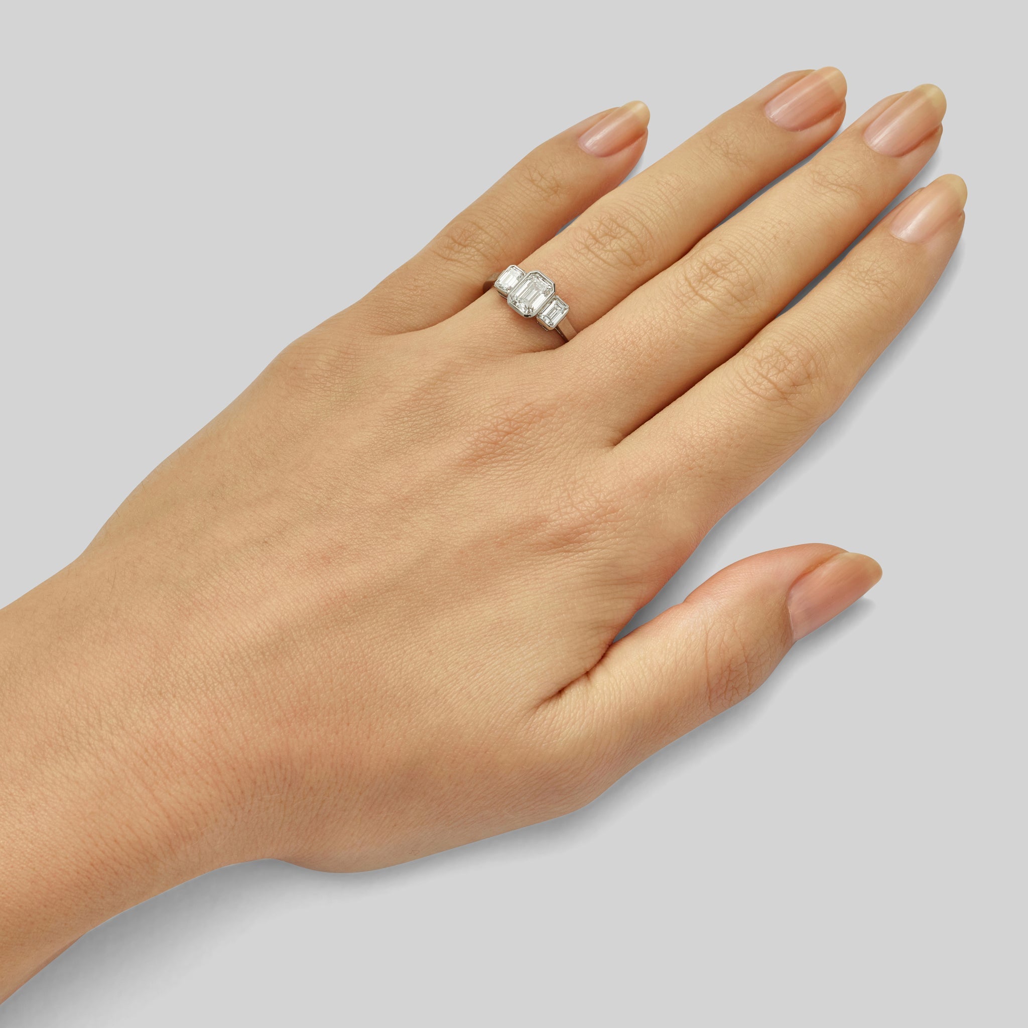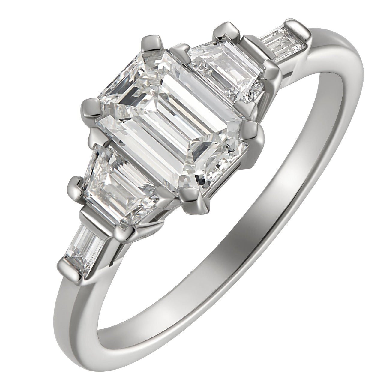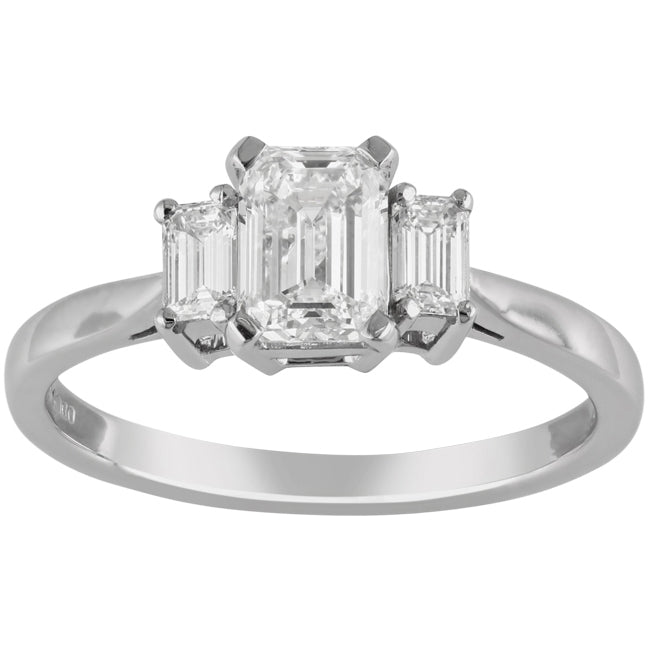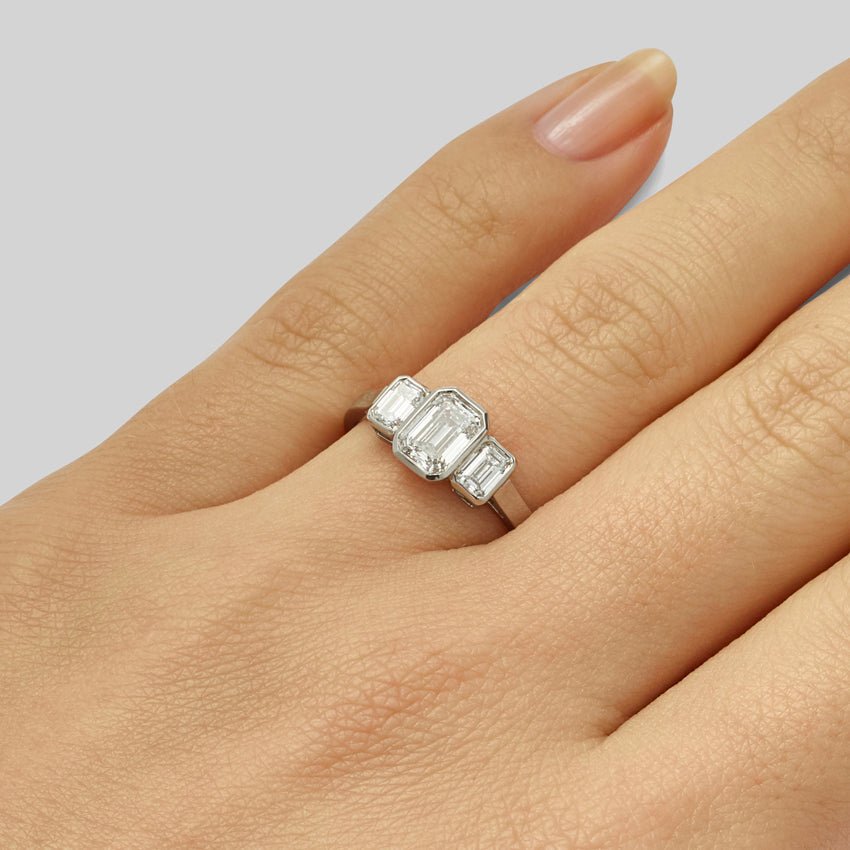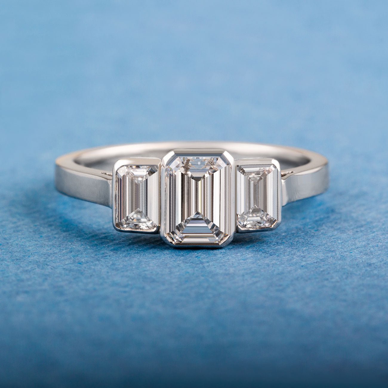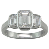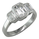 Emerald cut diamond three stone ring from Hatton Garden jewellers