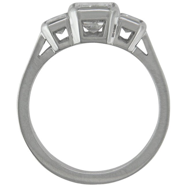 Rubover Set Emerald Cut Diamond Three Stone Ring