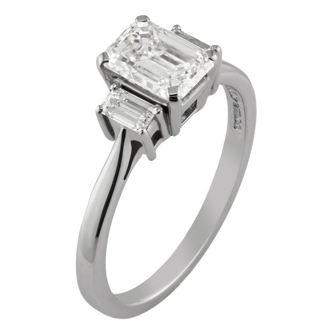 Lab Grown Diamond Emerald Cut Three Stone Engagement Ring