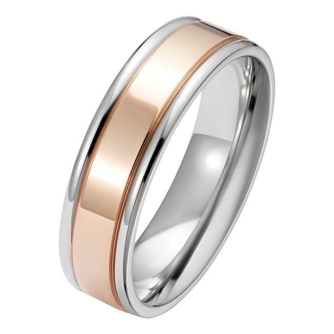 6mm Two Tone Men's Wedding Ring or Engagement Ring in Rose Gold and Platinum