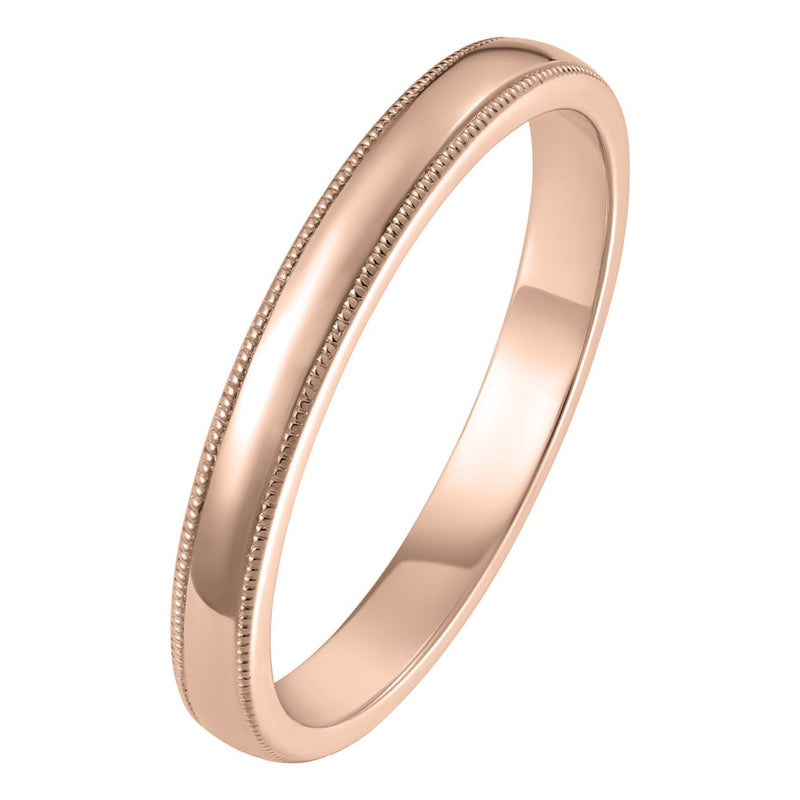 2.5mm Wedding Ring in 18ct Rose Gold with Millegrain Edging