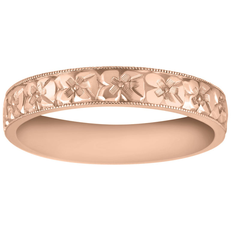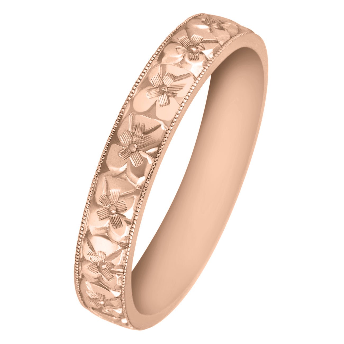 4mm Orange Blossom Engraved Ring in Rose Gold