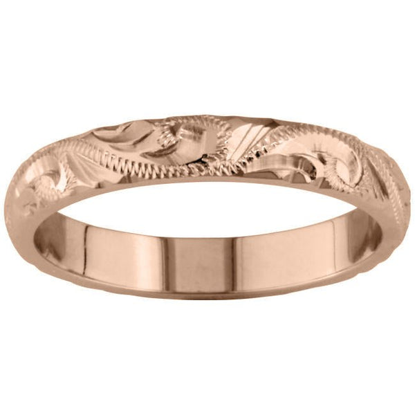 Paisley Pattern Hand Engraved Wedding Ring in 18ct Rose Gold