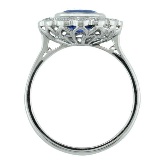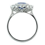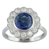 Brilliant cut sapphire and diamond cluster ring in platinum