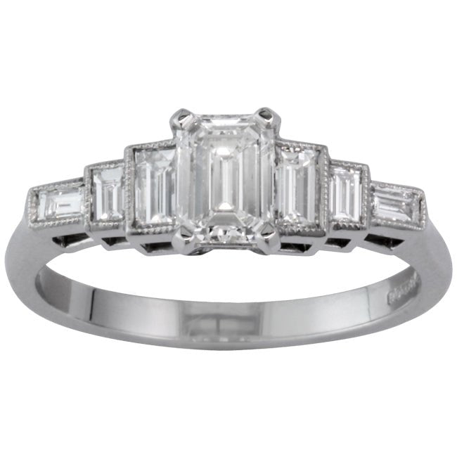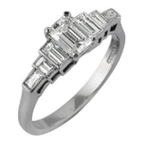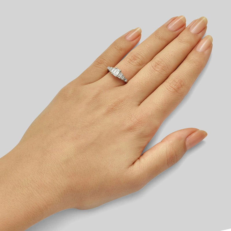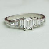 Emerald Cut and Baguette Diamond Ring in Platinum