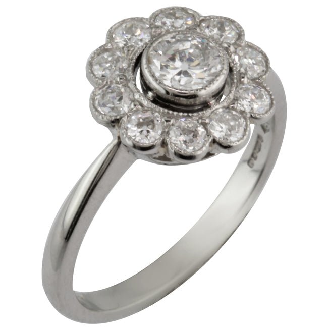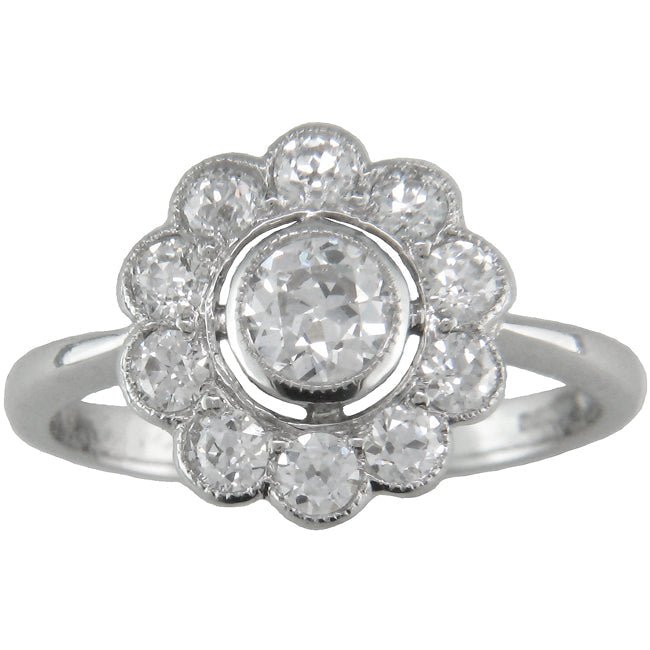Vintage Diamond Cluster Ring with Spiral Shoulders