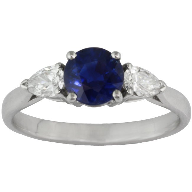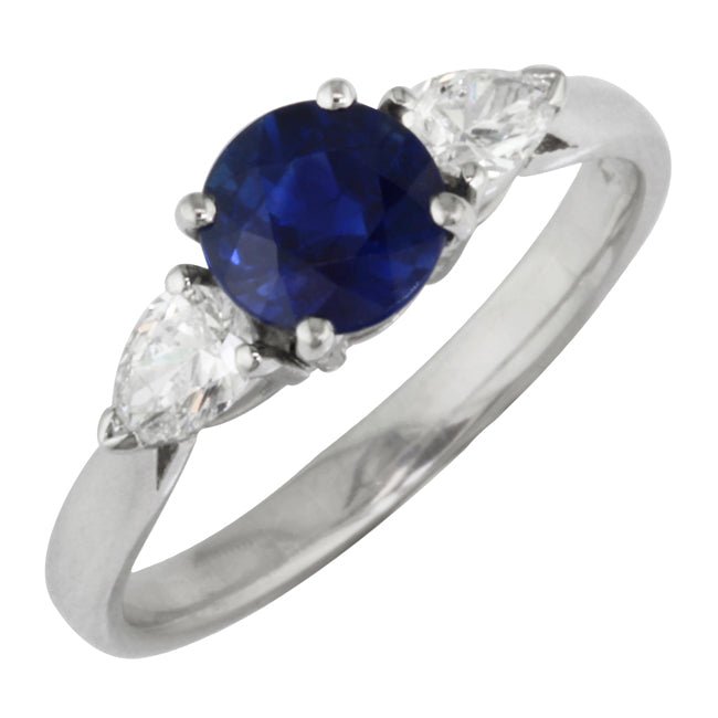 This aquamarine and pear-shape diamond three stone ring can be set with a central gemstone of your choice. Please contact us to begin designing your ring.