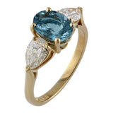 Bespoke Oval Aquamarine & Pear Shape Diamond Ring in Yellow Gold