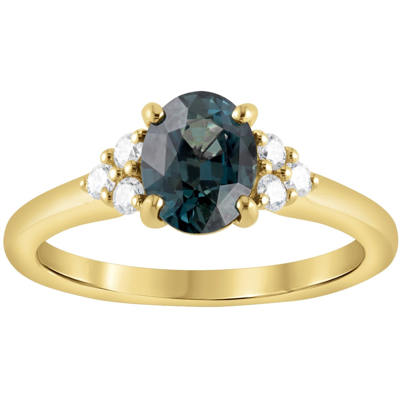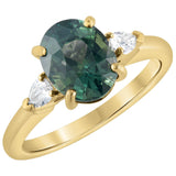 Oval Green Sapphire & Diamond Trilogy Engagement Ring in 18ct Yellow Gold