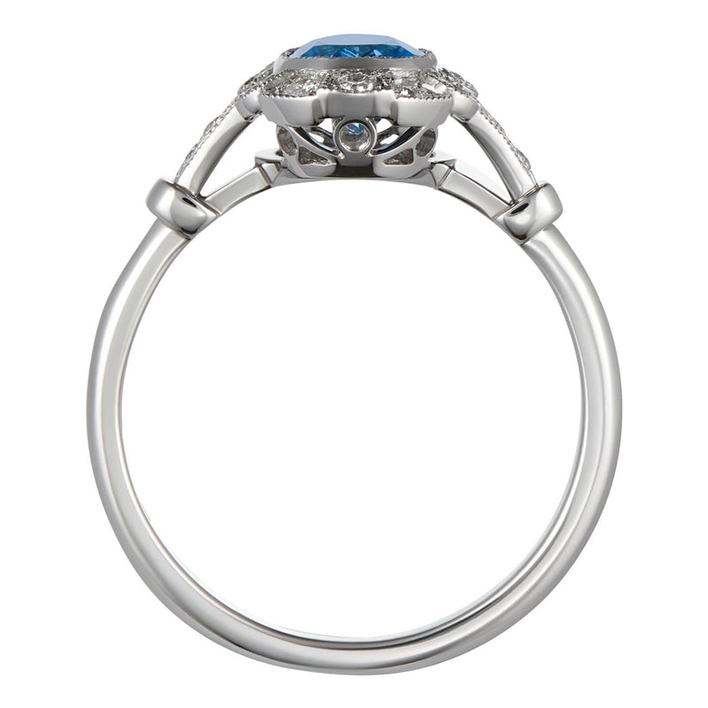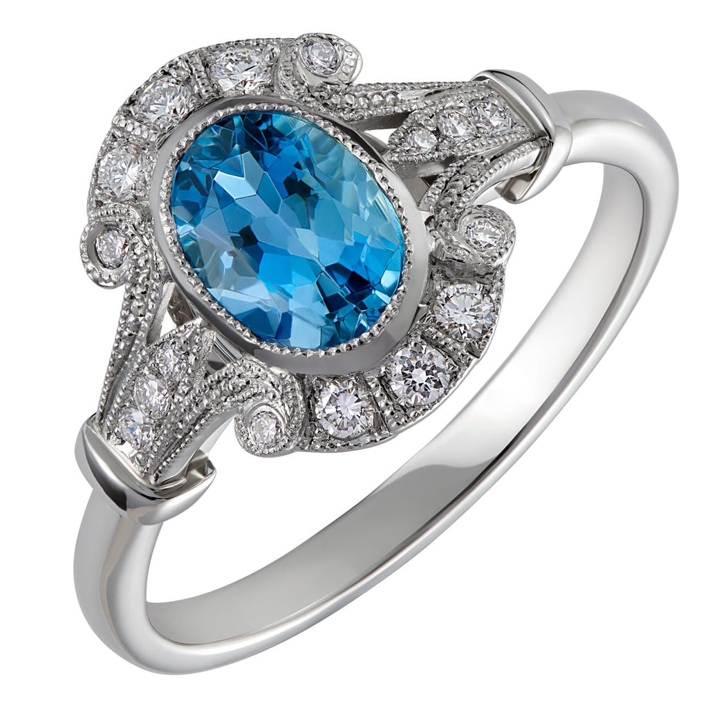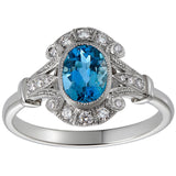 Vintage Style Oval Aquamarine and Diamond Cluster Ring