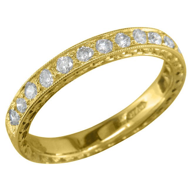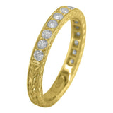 2.5mm Hand Engraved Yellow Gold Diamond Wedding Ring