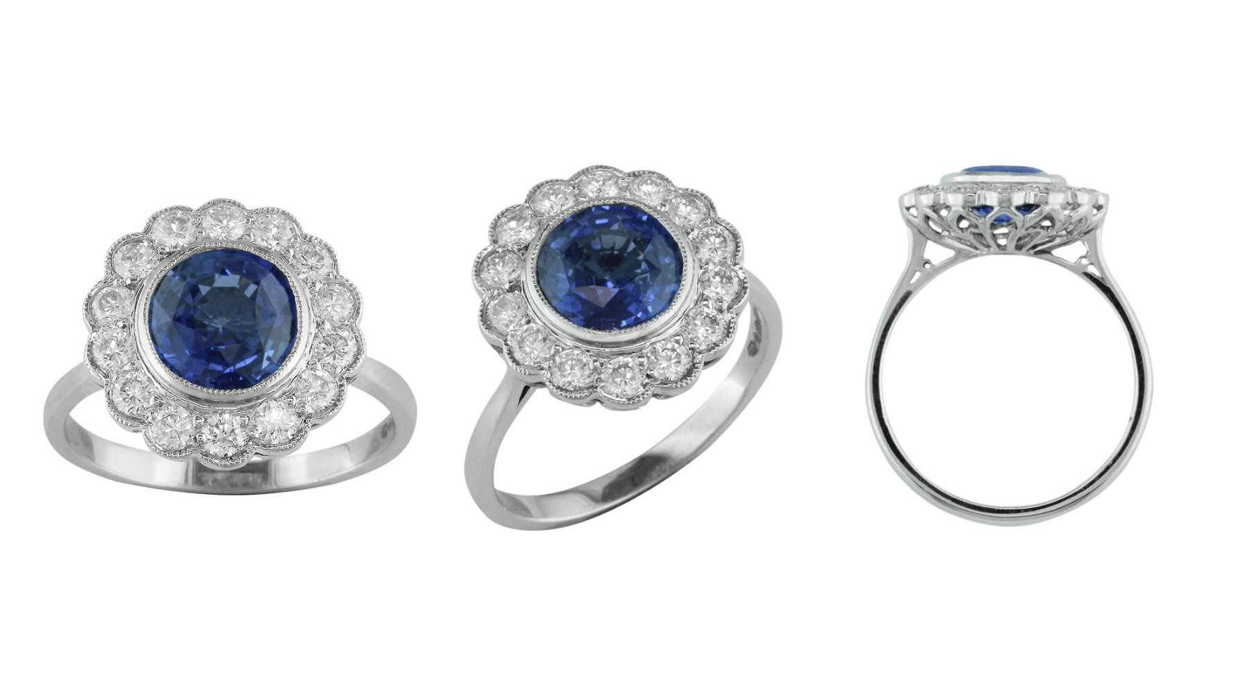 Sapphire and Diamond Cluster Ring as seen in Cambridge Magazine