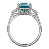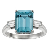 Dramatic Aquamarine Ring with Baguette Diamond Shoulders