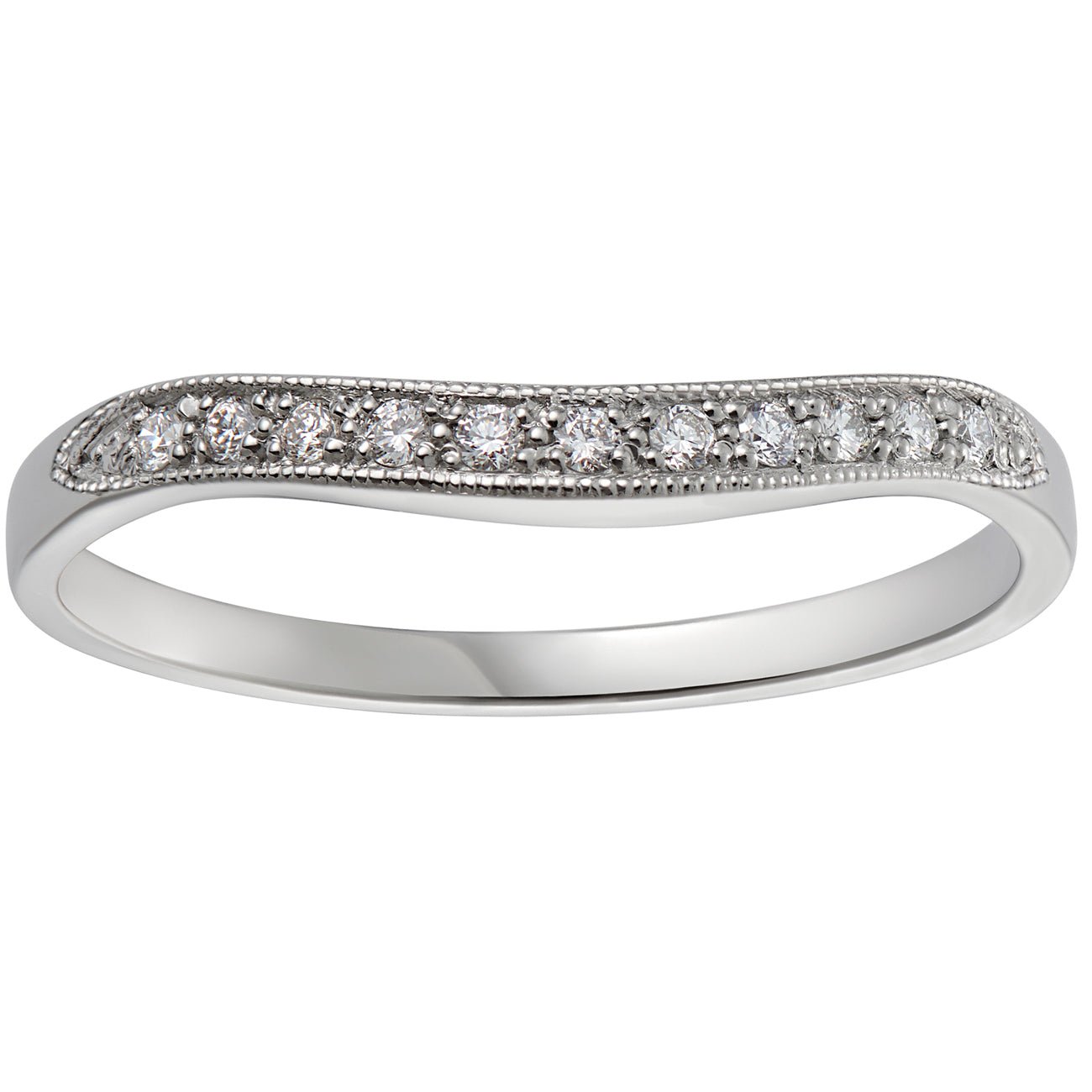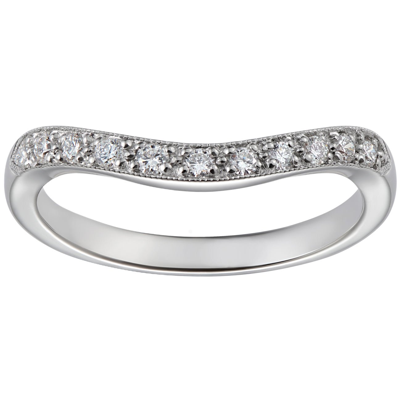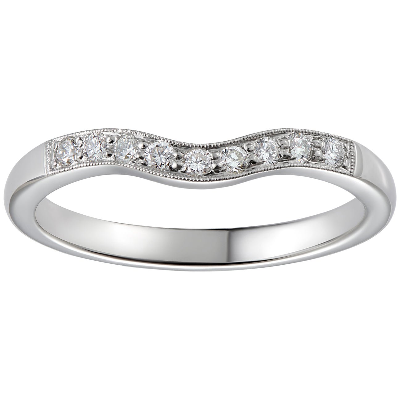 This 2.2mm curved diamond wedding ring has eleven round diamonds set in 18ct white gold. The gently shaped band is suitable for many vintage and modern low set engagement rings.