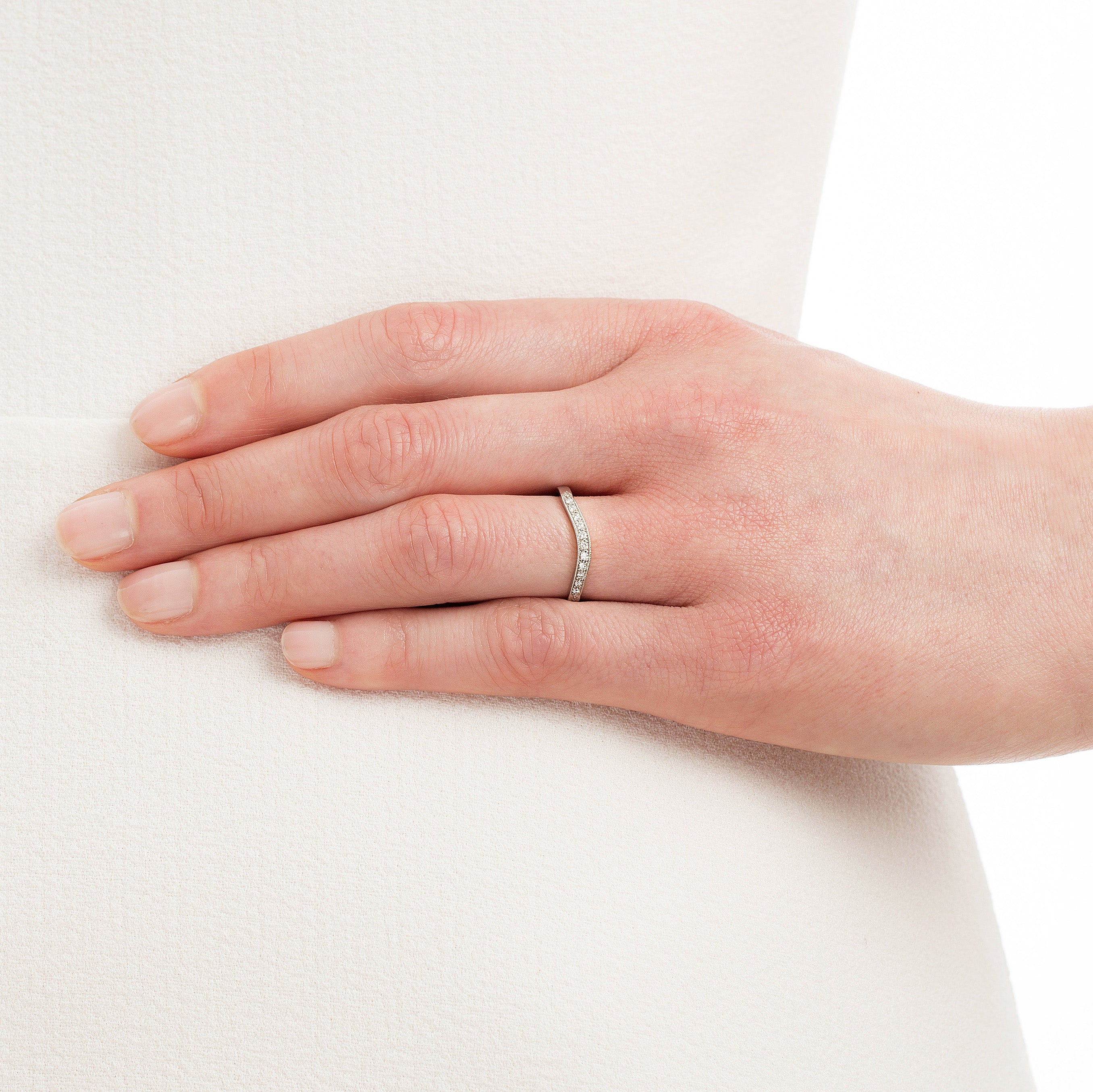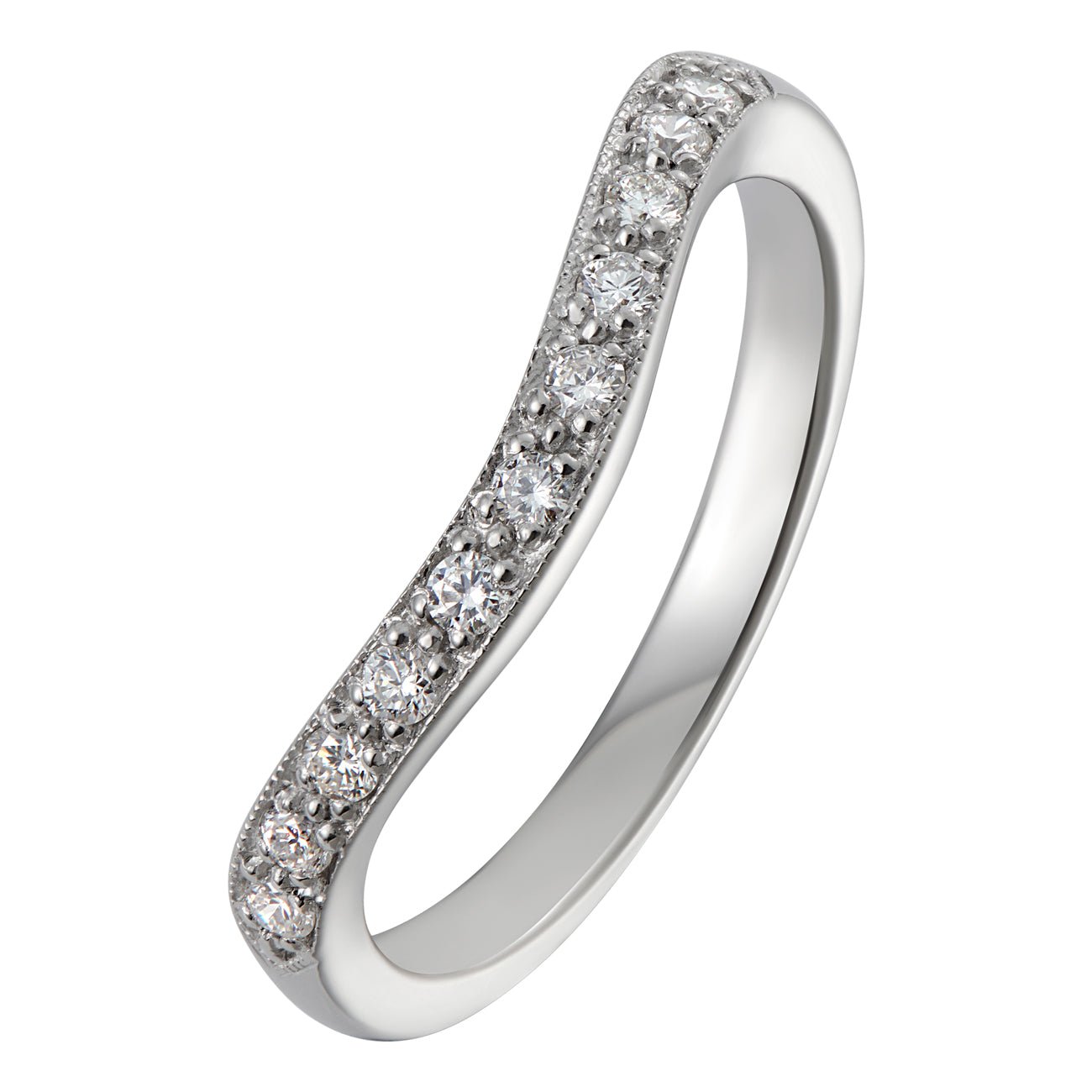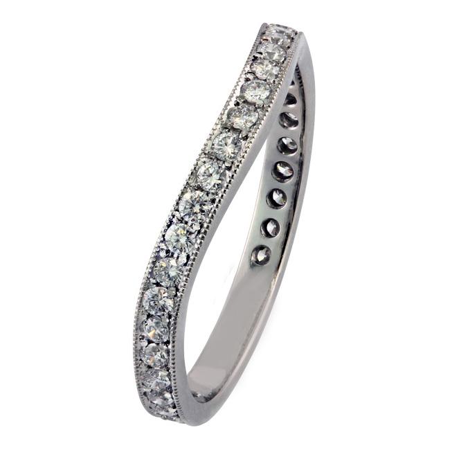 Curved diamond wedding ring in 18 carat white gold vintage inspired