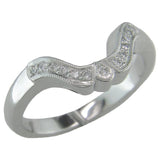 A shaped and closely fitting diamond wedding ring that makes a perfect bridal set for an elongated low-sitting engagement ring. This shaped diamond ring has been especially designed to curve around vintage cluster rings. The diamonds are grain set with a crisp millegrain edge.