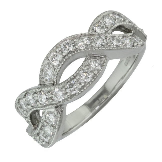 This platinum and diamond spiral twist ring is set with 1.00 carat of round brilliant cut diamonds.