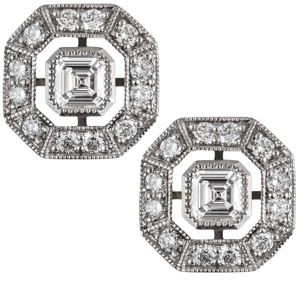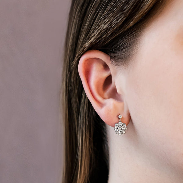 Visit us in London to see examples of all the classic and vintage style earrings on this page. Diamond earrings are made with guaranteed conflict free diamonds. If you prefer rose gold, yellow gold or white gold earrings, just let us know and we can make all jewellery to suit your requirements.