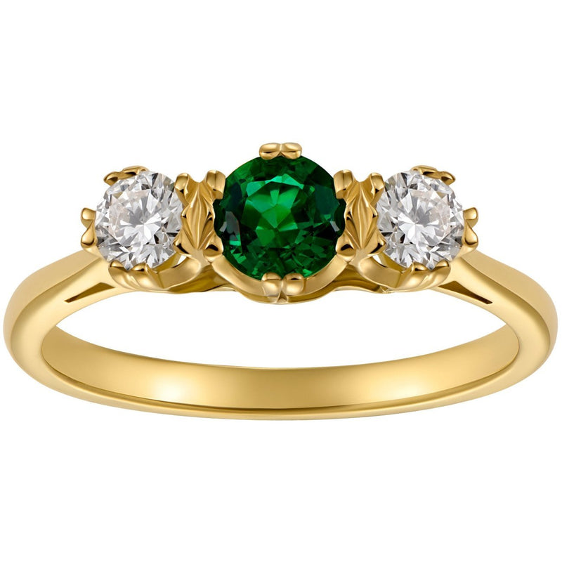 Three Stone Round Emerald and Diamond Ring in 18 Carat Yellow Gold