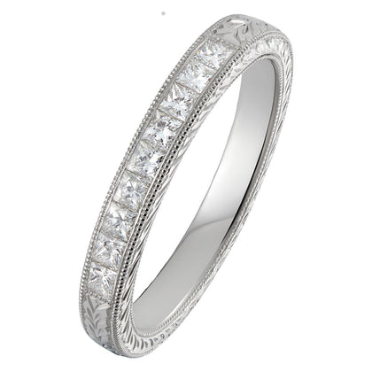 *Fully hand engraved and patterned wedding rings are bespoke designs made especially for the ring size selected. Depending on the complexity of the design, it is not always possible to re-size engraved wedding rings. Full eternity rings cannot be resized.