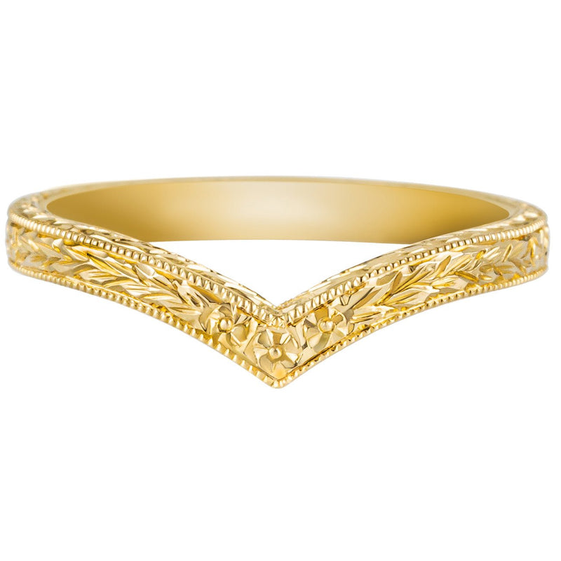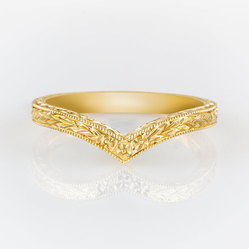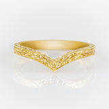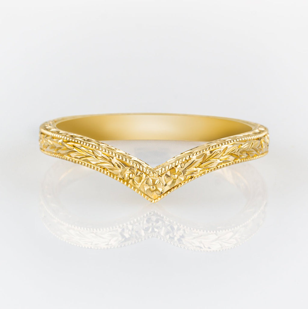 2.20 mm Engraved Yellow Gold Wishbone Wedding Ring with Forget-Me-Not Pattern
