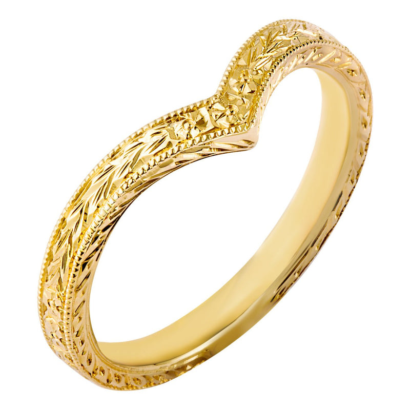 Your unique v-shape wedding band will be individually hand-engraved in London especially to your ring size.