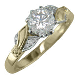 Based on natural floral designs, this two-tone engagement ring features stunning lab-grown diamonds set on platinum leaves. The 18-carat yellow band leads to a golden flower.