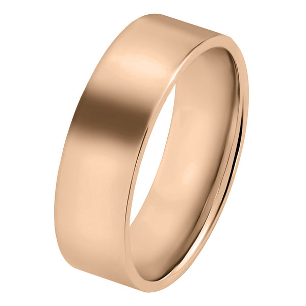 Shop our collection of 18-carat rose gold wedding rings for him. Rose gold has a warm hue, making it a popular metal for male wedding rings due to its unusual tone. As well as offering plain, engraved and unique rose gold men's wedding rings, you can select the width to suit you, from a slim man's ring to the popular 4mm, 5mm and 6mm widths and broader. All wedding rings are individually made to order in the United Kingdom.