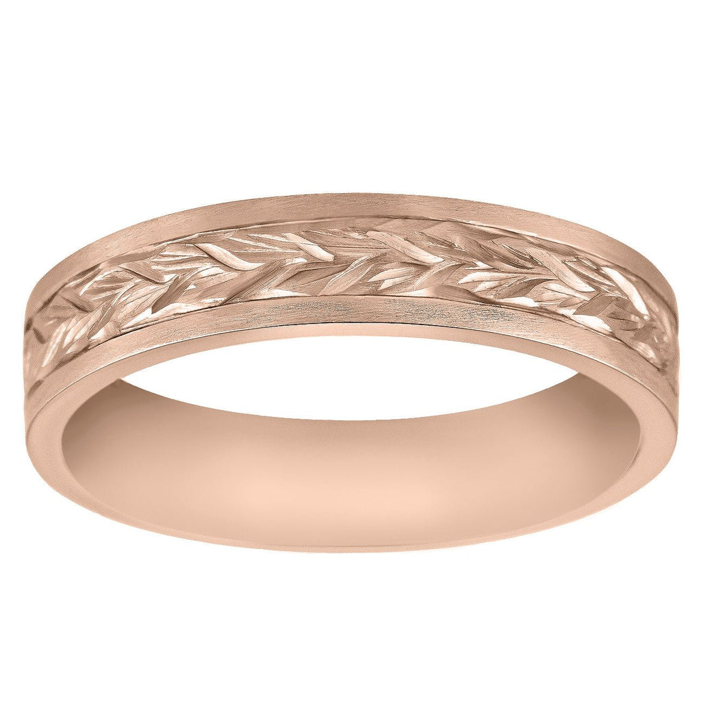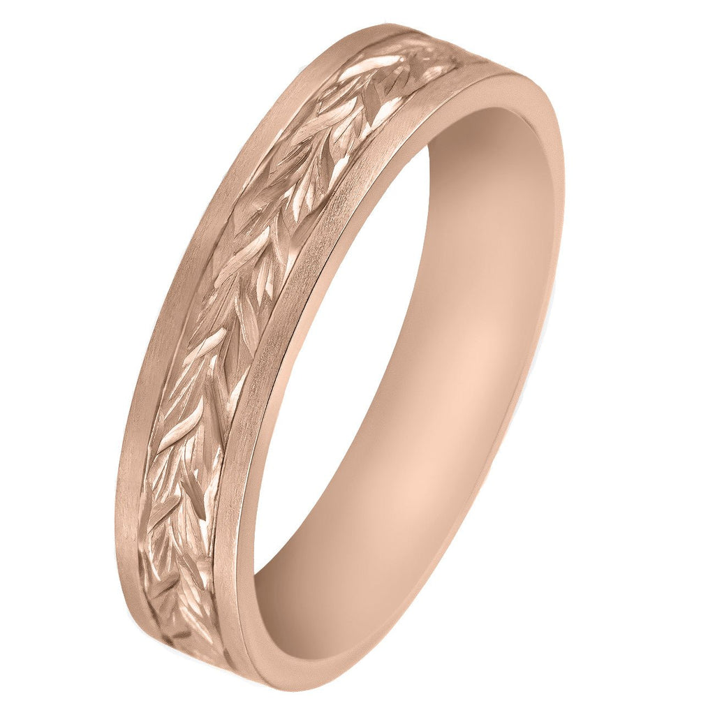 5mm Forget-Me-Not Leaves Engraved Wedding Band for Men in Rose Gold