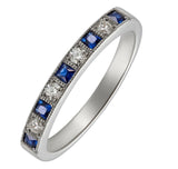 Book an appointment to try on this sapphire and diamond eternity or wedding ring in Hatton Garden, London or order online.