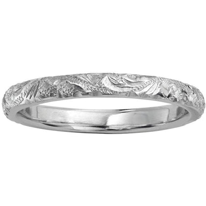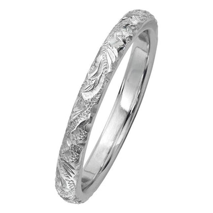 White Gold Engraved Patterned Wedding Ring in 2mm Width