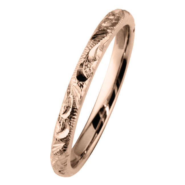 2mm Engraved Wishbone Wedding Ring in 18ct Rose Gold