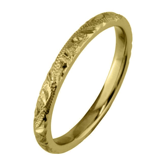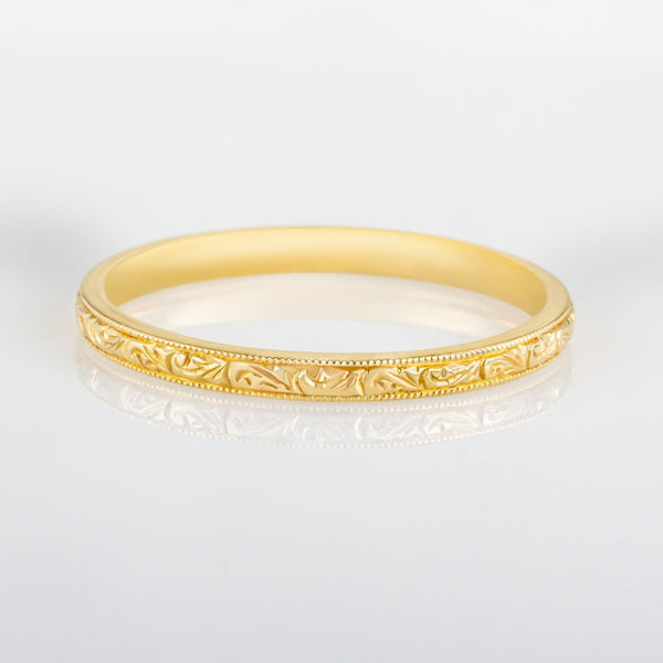 2mm Fine Scroll Engraved Wedding Ring in 18ct Yellow Gold