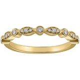Our unique diamond wedding band in warm 18ct yellow gold features a beautiful marquise design that alternates between round and marquise-shaped settings. Each round bezel holds a single brilliant-cut diamond, while each marquise-shaped section holds a trio of diamonds, symbolising the past, present and future.