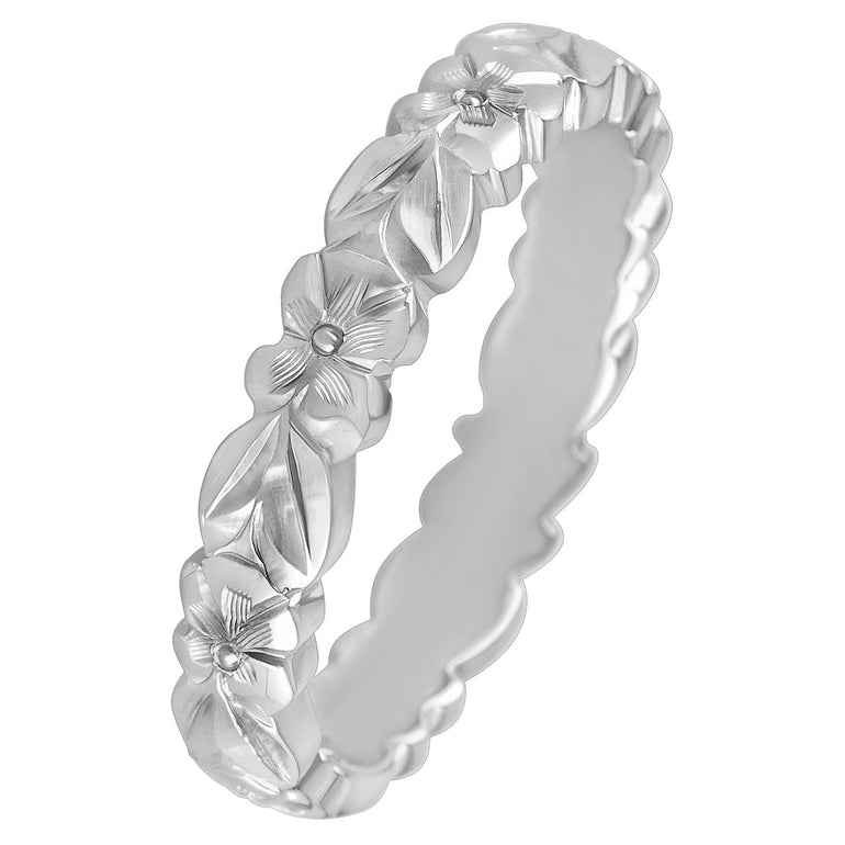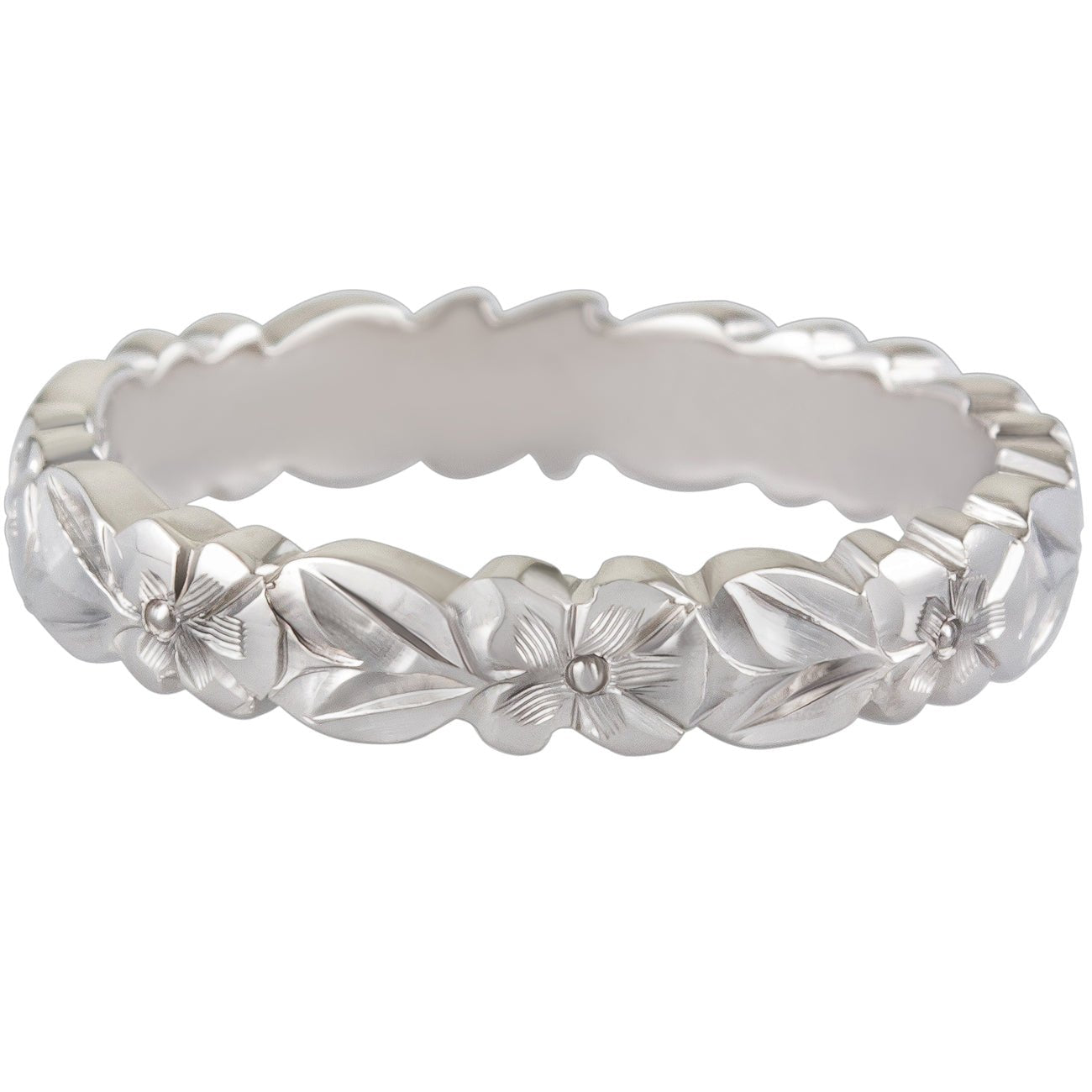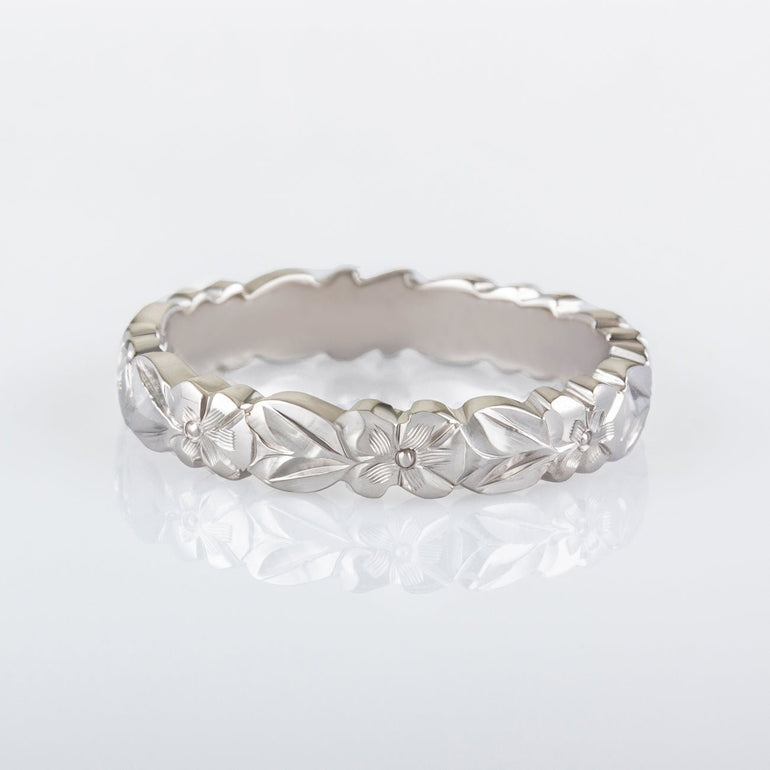 3.5mm Botanical Hand Engraved Wedding Ring in White Gold
