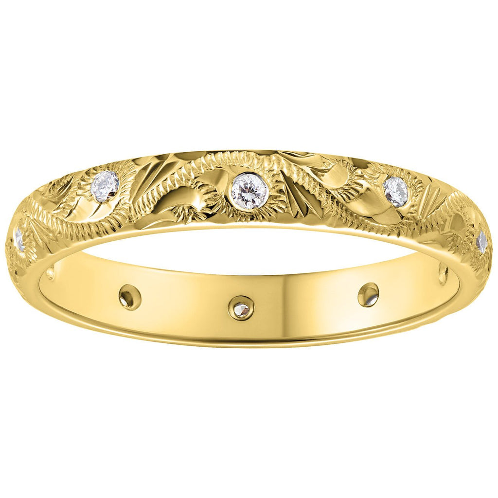3mm Paisley Engraved Diamond Wedding Band in 18ct Yellow Gold