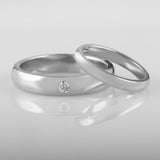This 4mm diamond wedding band for men in platinum is set with a 0.06 carat round brilliant-cut diamond. The polished wedding ring has a court profile to provide maximum comfort on the finger.