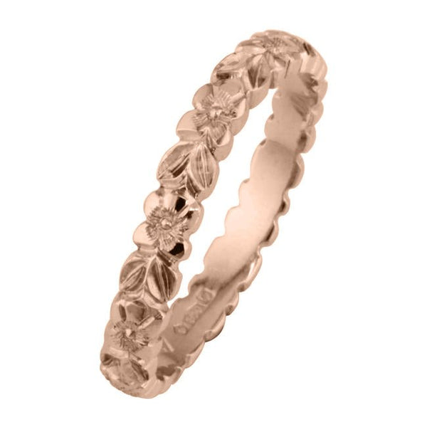 5mm Hand Engraved 'Forget-Me-Not' Wedding or Engagement Ring in 18ct Rose Gold